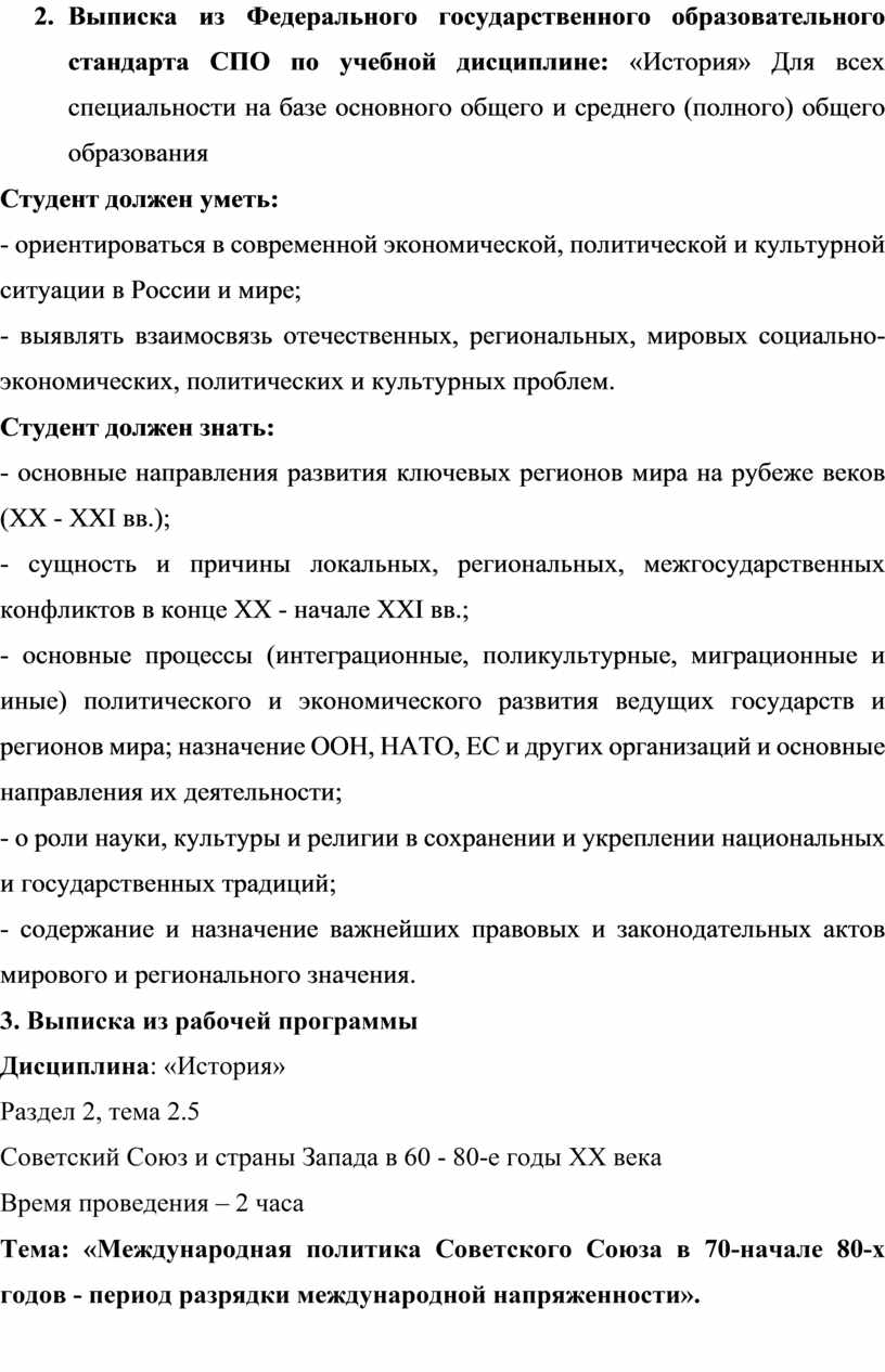 2. Выписка из Федерального государственного образовательного стандарта СПО по учебной дисциплине: «История» Для всех специальности на базе основного общего и среднего (полного) общего образования
