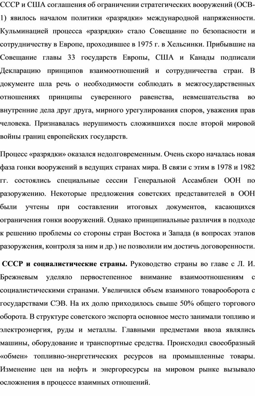Политика «разрядки». СССР и социалистические страны. Международный кризис конца 70-х годов. Общество накануне перестройки.