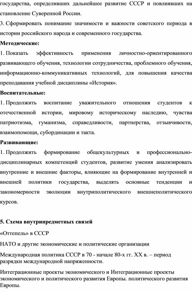 1. Сориентировать студентов на комплексное изучение социально-экономических, политических и культурных процессов советского государства, определивших дальнейшее развитие СССР и повлиявших на становление Суверенной России.