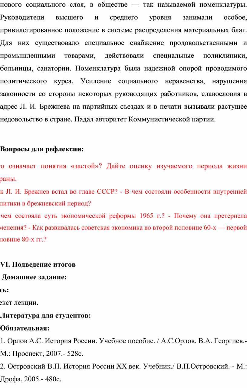 1. Что означает понятия «застой»? Дайте оценку изучаемого периода жизни страны.