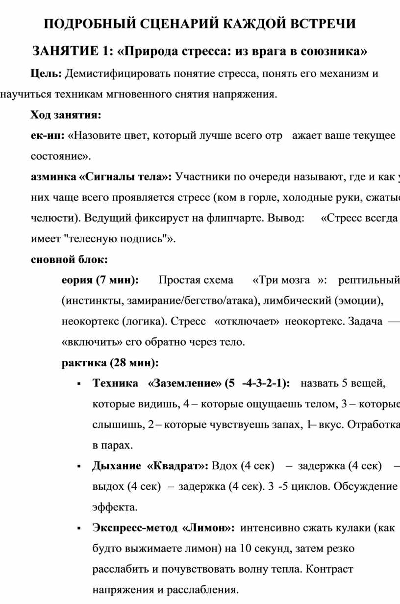 ПОДРОБНЫЙ СЦЕНАРИЙ КАЖДОЙ ВСТРЕЧИ