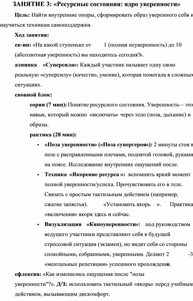 ЗАНЯТИЕ 3: «Ресурсные состояния: ядро уверенности»