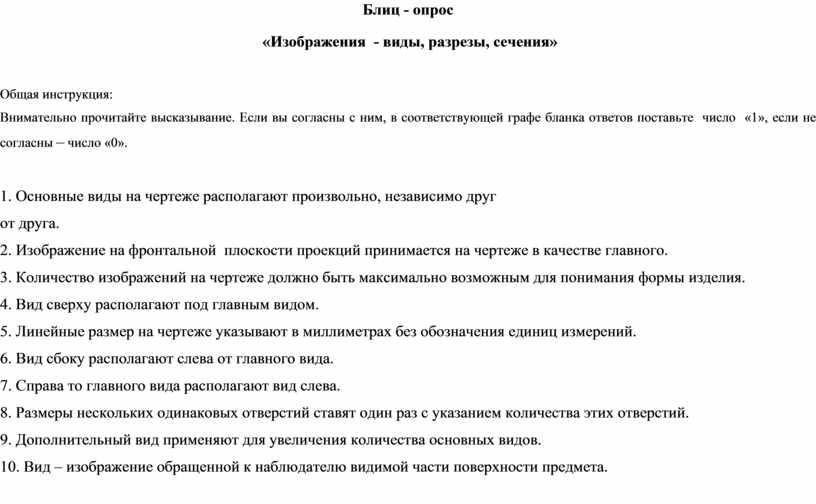 Эталон ответов к блиц - опросу «Изображения – виды, разрезы, сечения»
