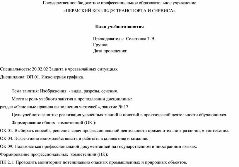План учебного занятия