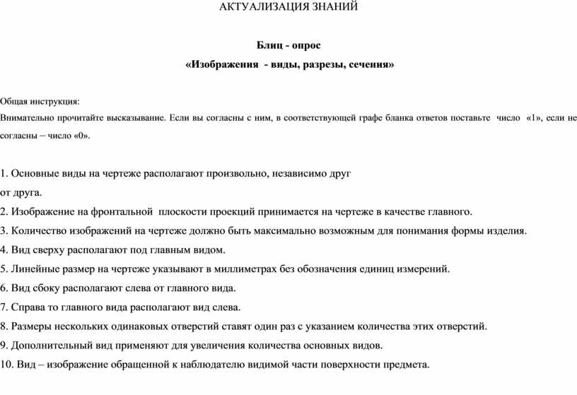Организация работы по проверке остаточных знаний по теме «Изображения - виды, разрезы, сечения» |
