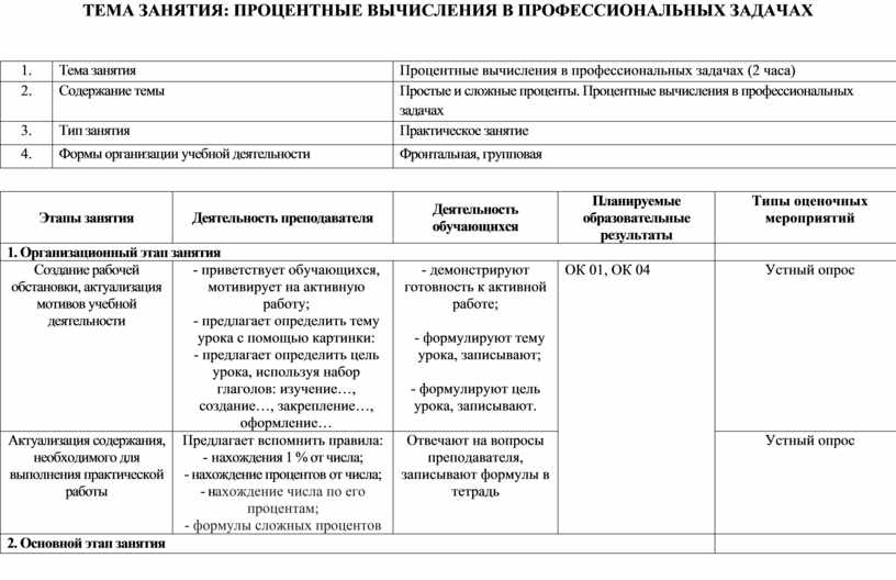 Методическая разработка практического занятия для преподавателя по теме «Процентные вычисления в профессиональных задачах»