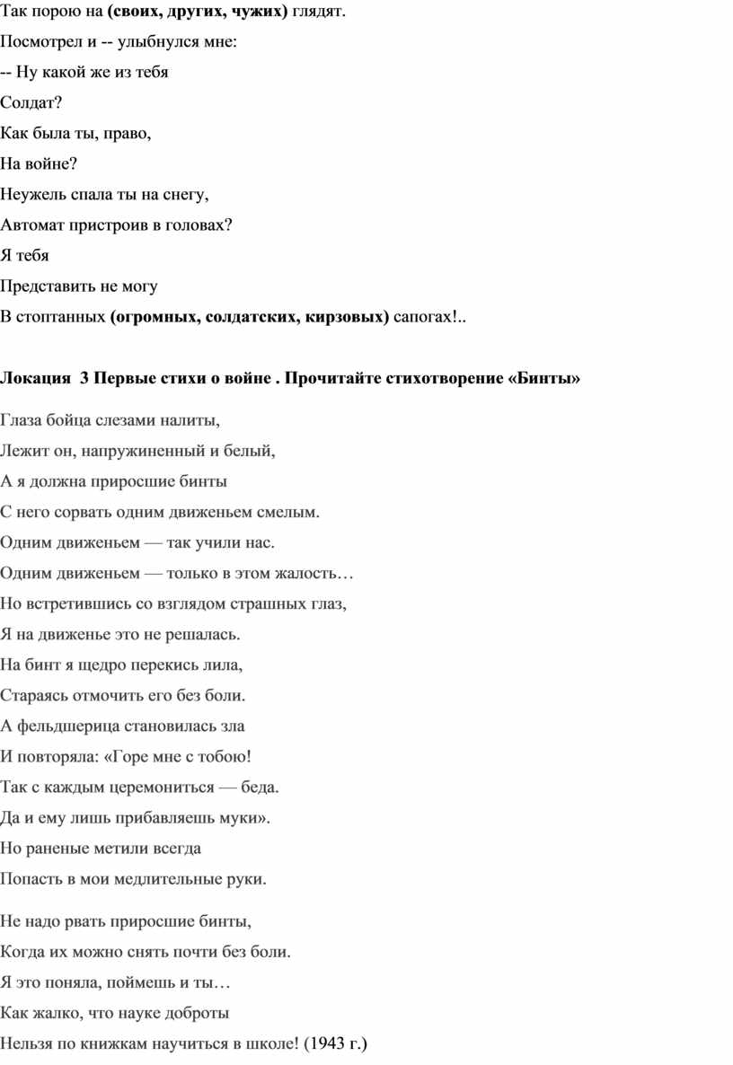 Локация 3 Первые стихи о войне . Прочитайте стихотворение «Бинты»