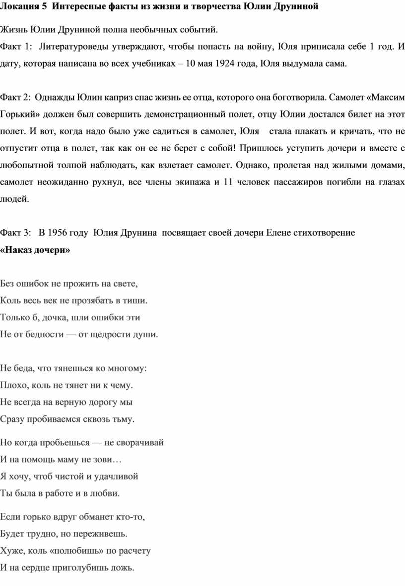 Локация 5 Интересные факты из жизни и творчества Юлии Друниной