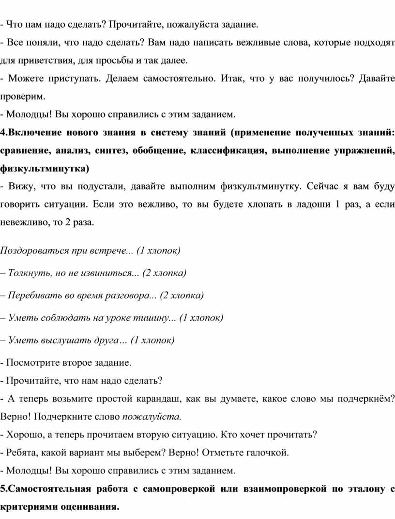 - Вижу, что вы подустали, давайте выполним физкультминутку. Сейчас я вам буду говорить ситуации. Если это вежливо, то вы будете хлопать в ладоши 1 раз, а если невежливо, то 2 раза.