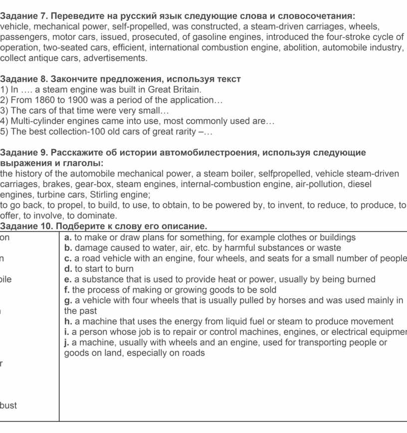 Задание 9. Расскажите об истории автомобилестроения, используя следующие выражения и глаголы: