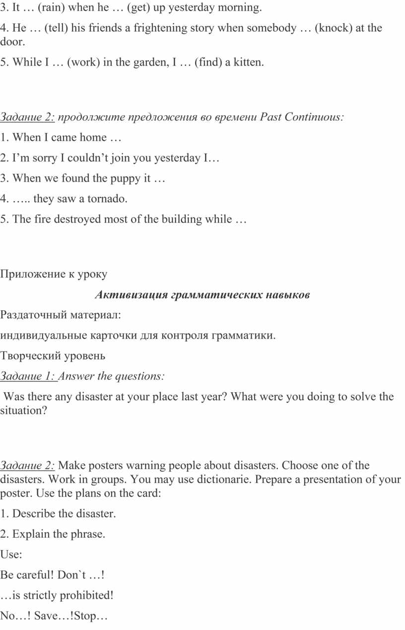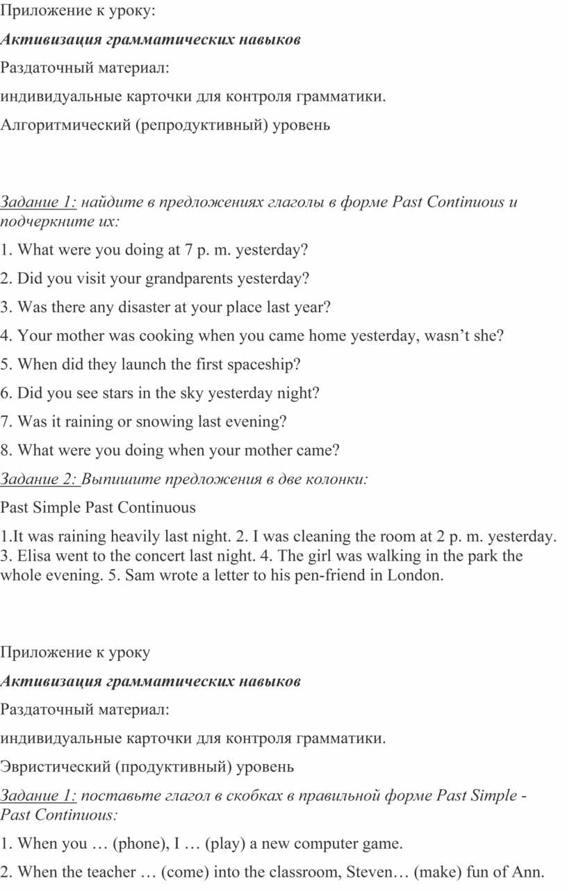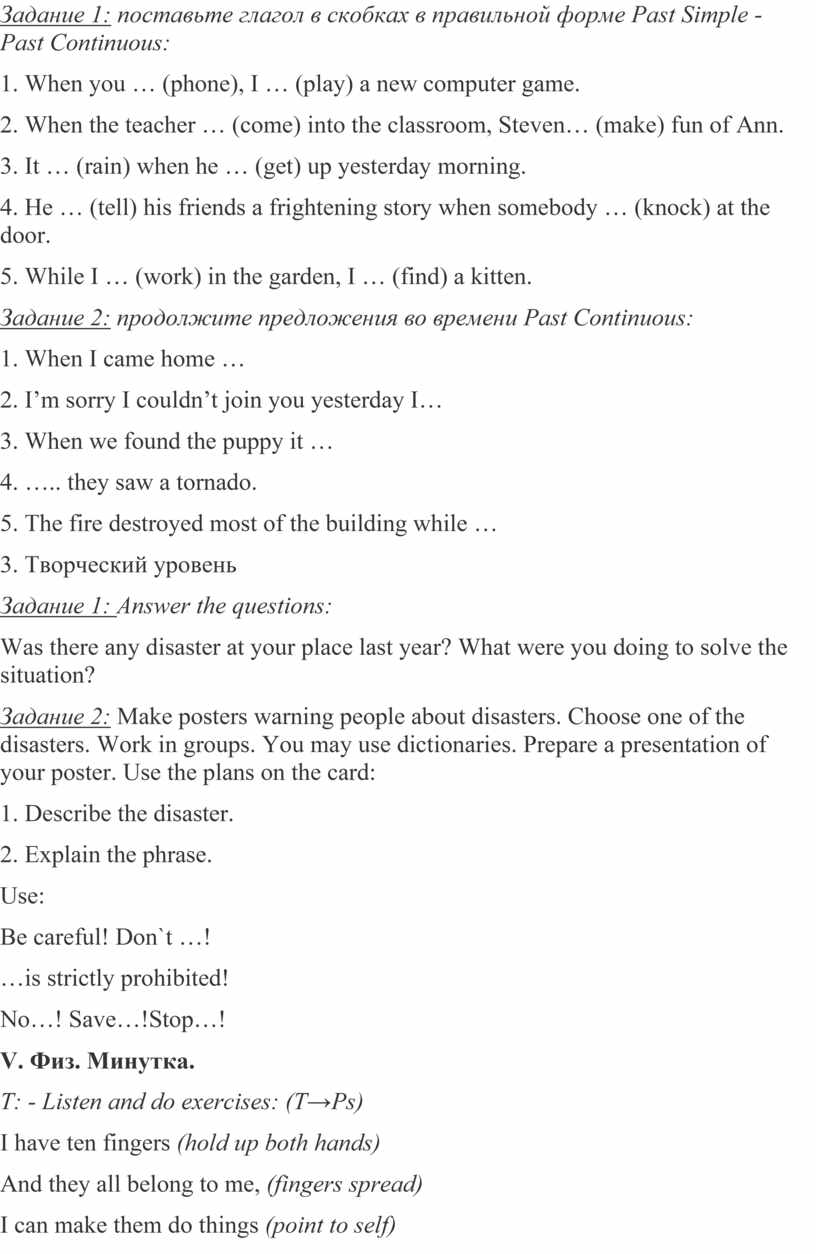 Задание 1: поставьте глагол в скобках в правильной форме Past Simple -Past Continuous: