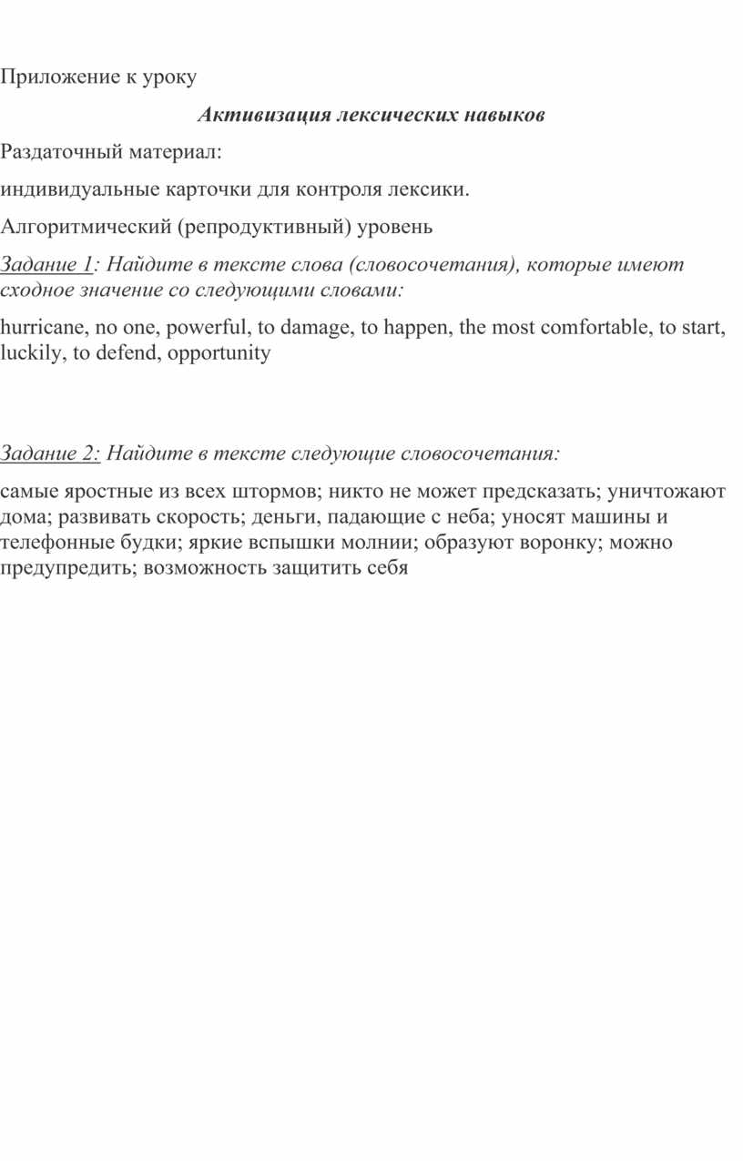 Активизация лексических навыков