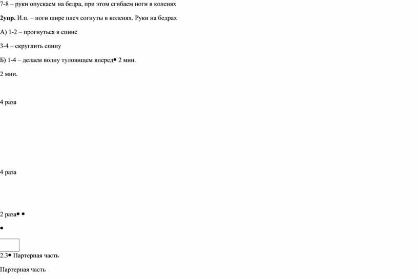 Выполнение сочетаний «блоков», увеличение нагрузки за счет координационной сложности, амплитуды и интенсивности движений. |