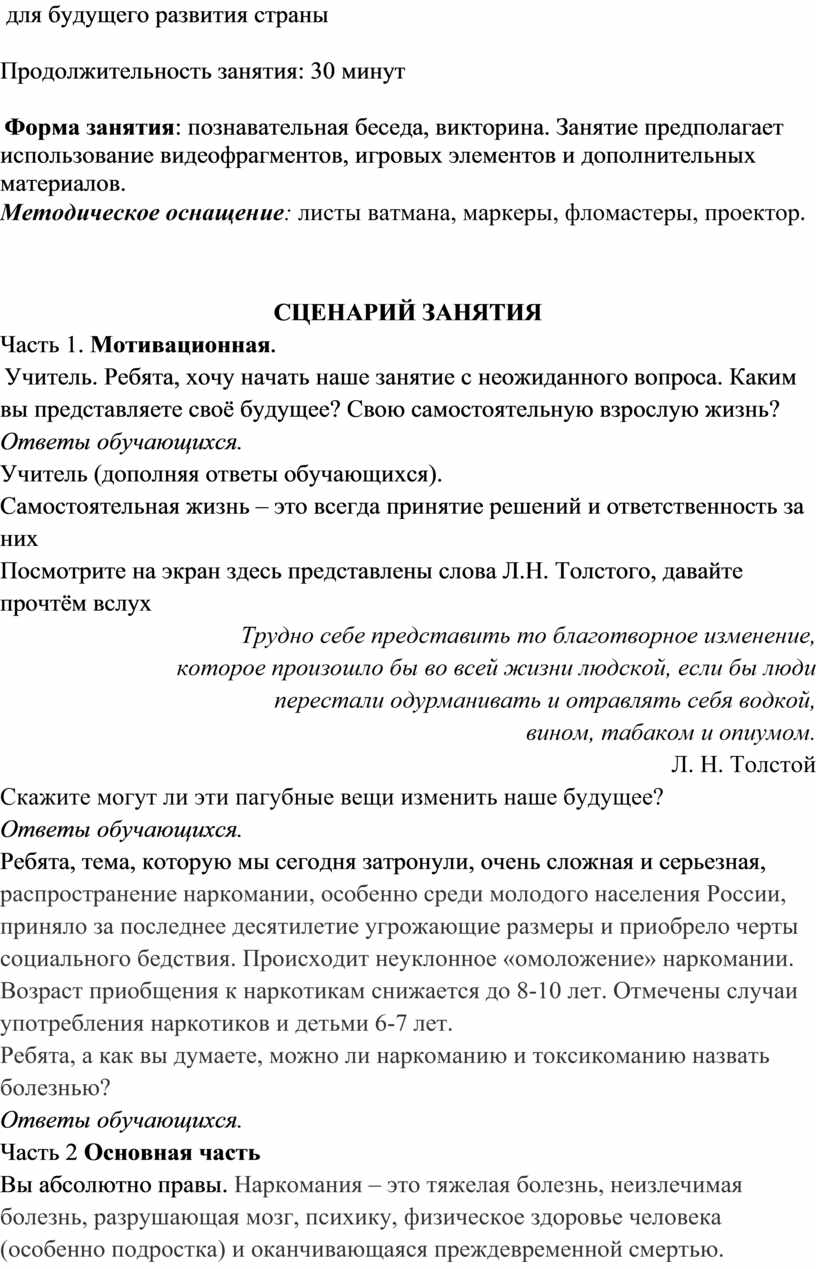 Форма занятия: познавательная беседа, викторина. Занятие предполагает использование видеофрагментов, игровых элементов и дополнительных материалов.