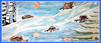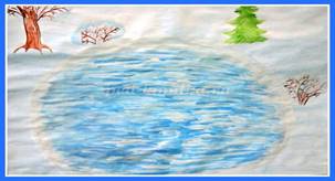 -Продолжаем наш путь. Перед нами Счетное озеро. Оно покрыто льдом. Ребята, нужно быть осторожными, устно считая, правильно его пройти.