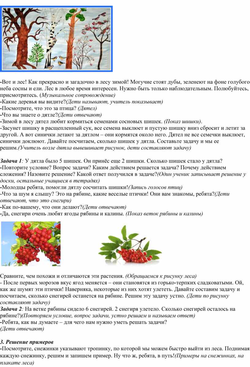 сколько снегирей останется на рябине. Решим эту задачу устно. (Дети по рисунку составляют