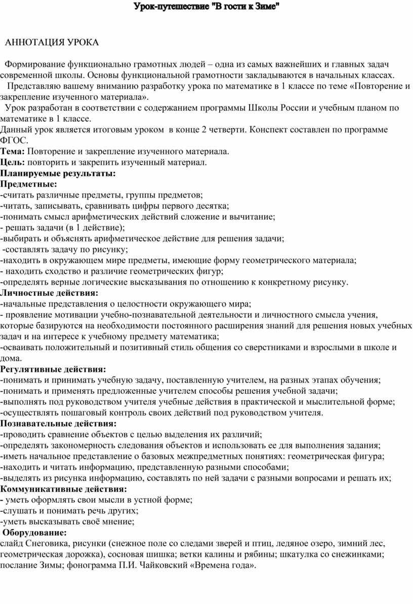 Урок-путешествие "В гости к Зиме"