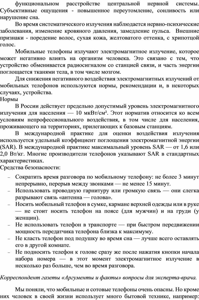 Корреспондент газеты «Аргументы и факты» вопросы для эксперта-врача.