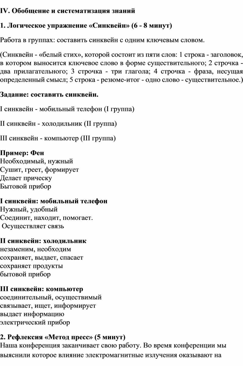 IV. Обобщение и систематизация знаний