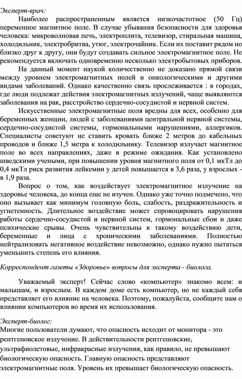 Корреспондент газеты «Здоровье» вопросы для эксперта - биолога.