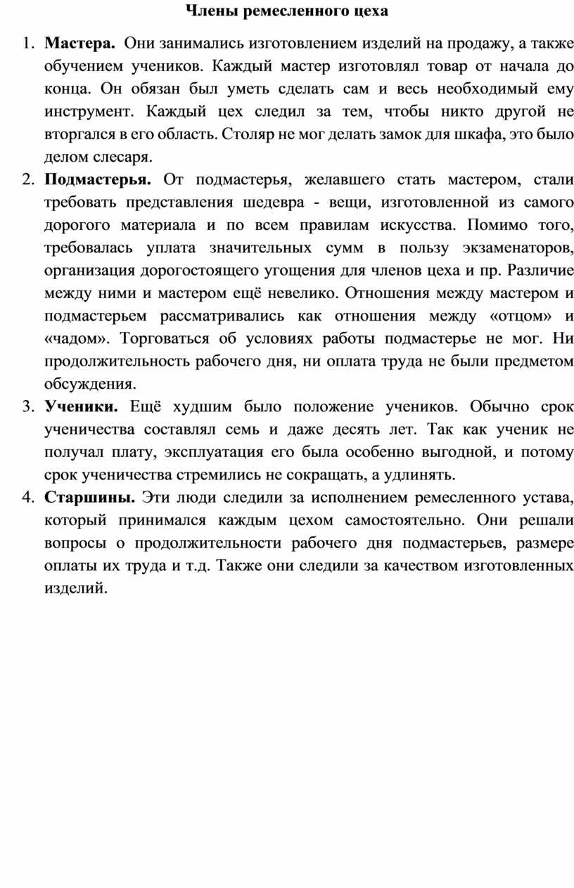 3. Ученики. Ещё худшим было положение учеников. Обычно срок ученичества составлял семь и даже десять лет. Так как ученик не получал плату, эксплуатация его была особенно выгодной, и потому срок ученичества стремились не сокращать, а удлинять.