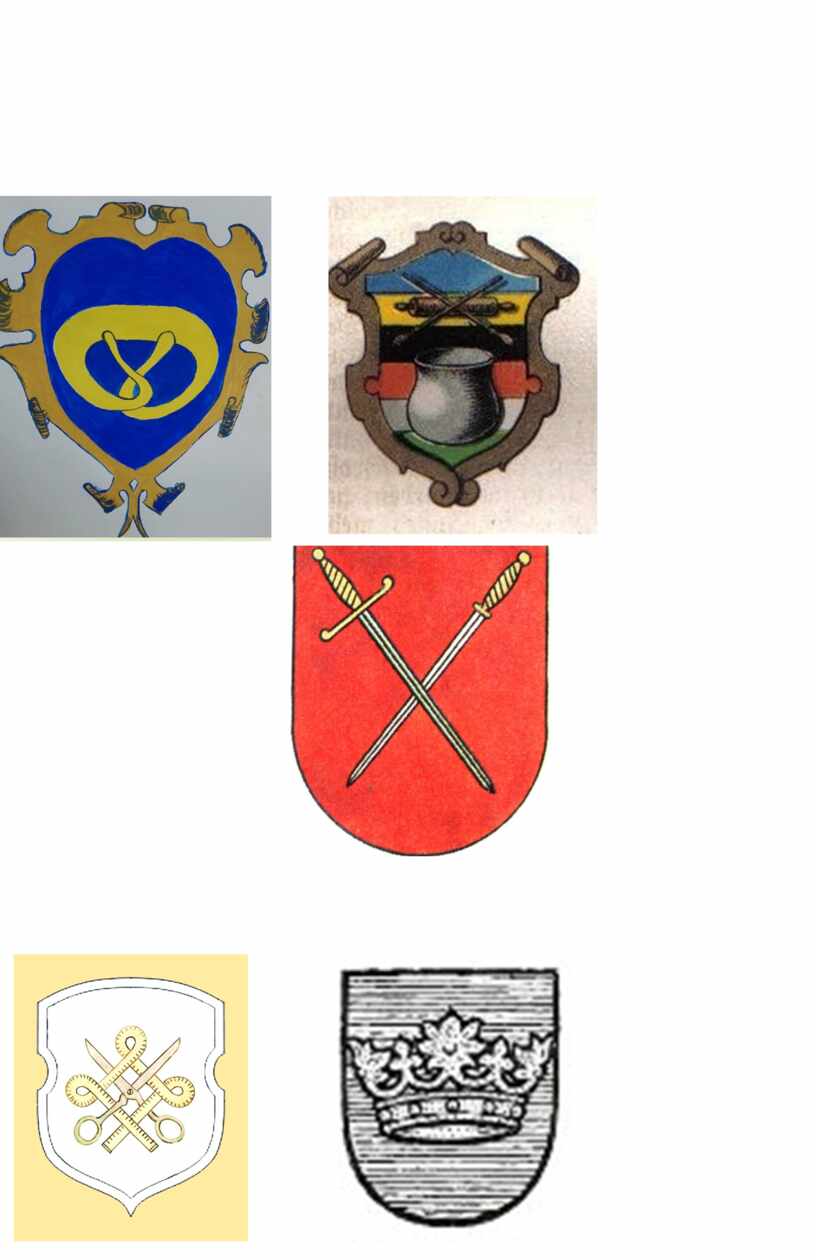- Во многих городах ремесленники объединялись в цехи. Каждый цех имел свой герб и знамя. Некоторые из них вы можете видеть на слайде. Как вы думаете, представителям каких ремёсел могли принадлежать данные гербы?