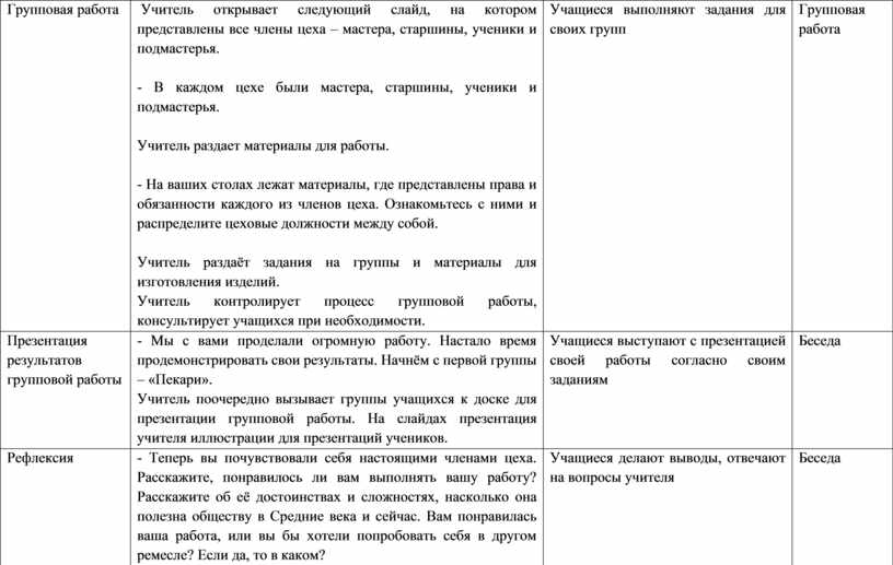 - Теперь вы почувствовали себя настоящими членами цеха. Расскажите, понравилось ли вам выполнять вашу работу? Расскажите об её достоинствах и сложностях, насколько она полезна обществу в Средние века и сейчас. Вам понравилась ваша работа, или вы бы хотели попробовать себя в другом ремесле? Если да, то в каком? |