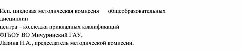 Исп. цикловая методическая комиссия общеобразовательных дисциплин
