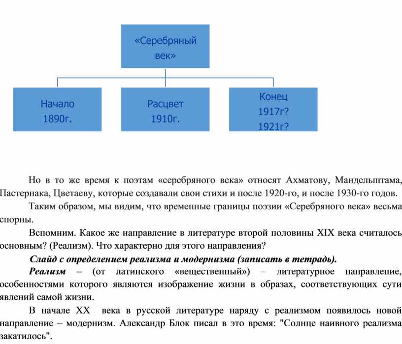 Тема: «Серебряный век русской поэзии. Основные литературные течения: символизм, акмеизм, футуризм»