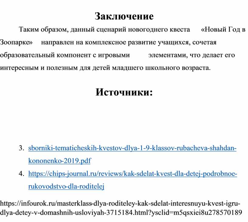 Таким образом, данный сценарий новогоднего квеста «Новый Год в Зоопарке» направлен на комплексное развитие учащихся, сочетая образовательный компонент с игровыми элементами, что делает его интересным и полезным для детей младшего школьного возраста.