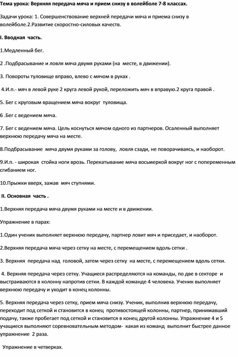 Тема урока: Верхняя передача мяча и прием снизу в волейболе 7-8 классах.