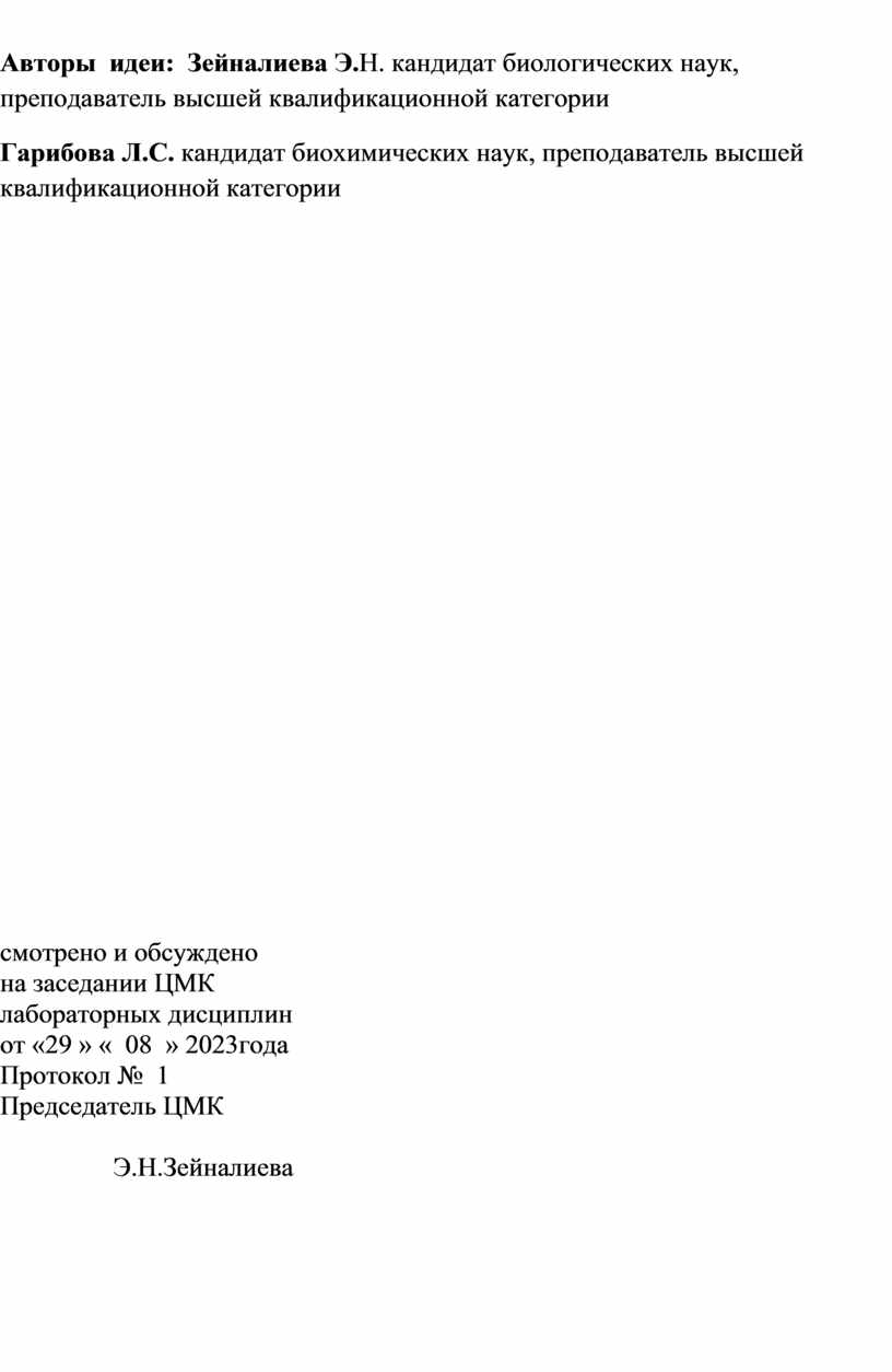 Гарибова Л.С. кандидат биохимических наук, преподаватель высшей квалификационной категории