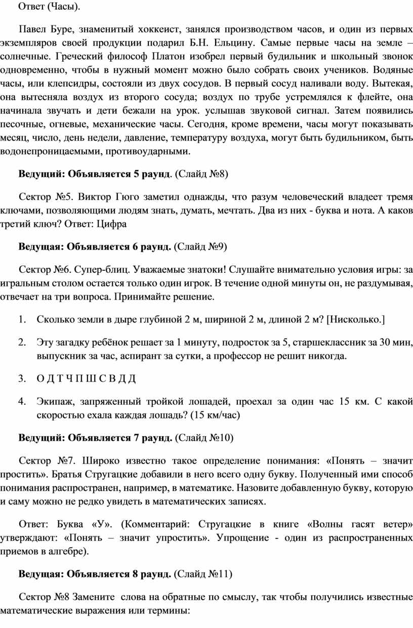 Сектор №5. Виктор Гюго заметил однажды, что разум человеческий владеет тремя ключами, позволяющими людям знать, думать, мечтать. Два из них - буква и нота. А каков третий ключ? Ответ: Цифра