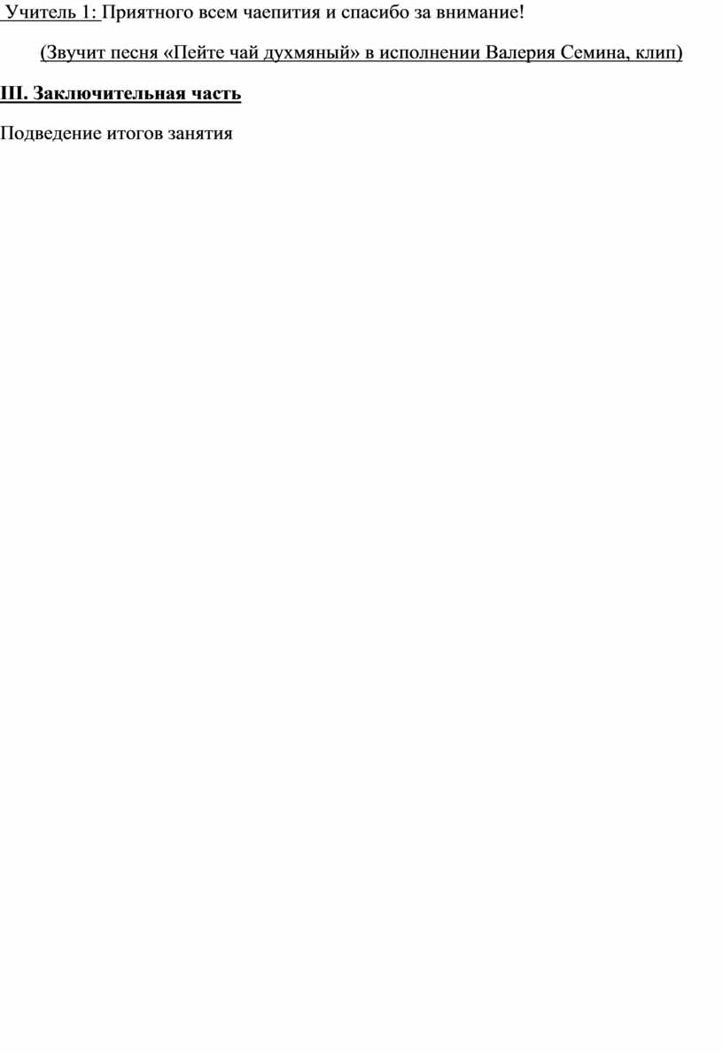 Учитель 1: Приятного всем чаепития и спасибо за внимание!