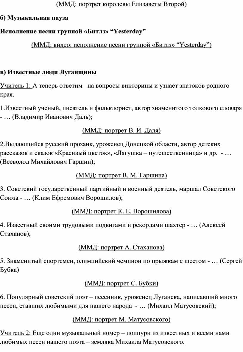 Учитель 1: Как Великобритания, так и Луганская Народная Республика богаты и знамениты не только памятниками природы, но и выдающимися, замечательными людьми.