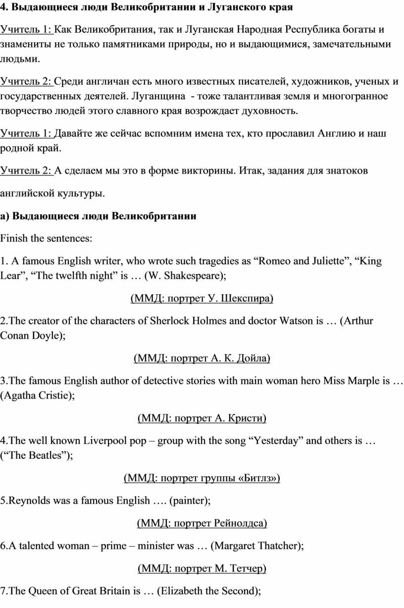 4. Выдающиеся люди Великобритании и Луганского края
