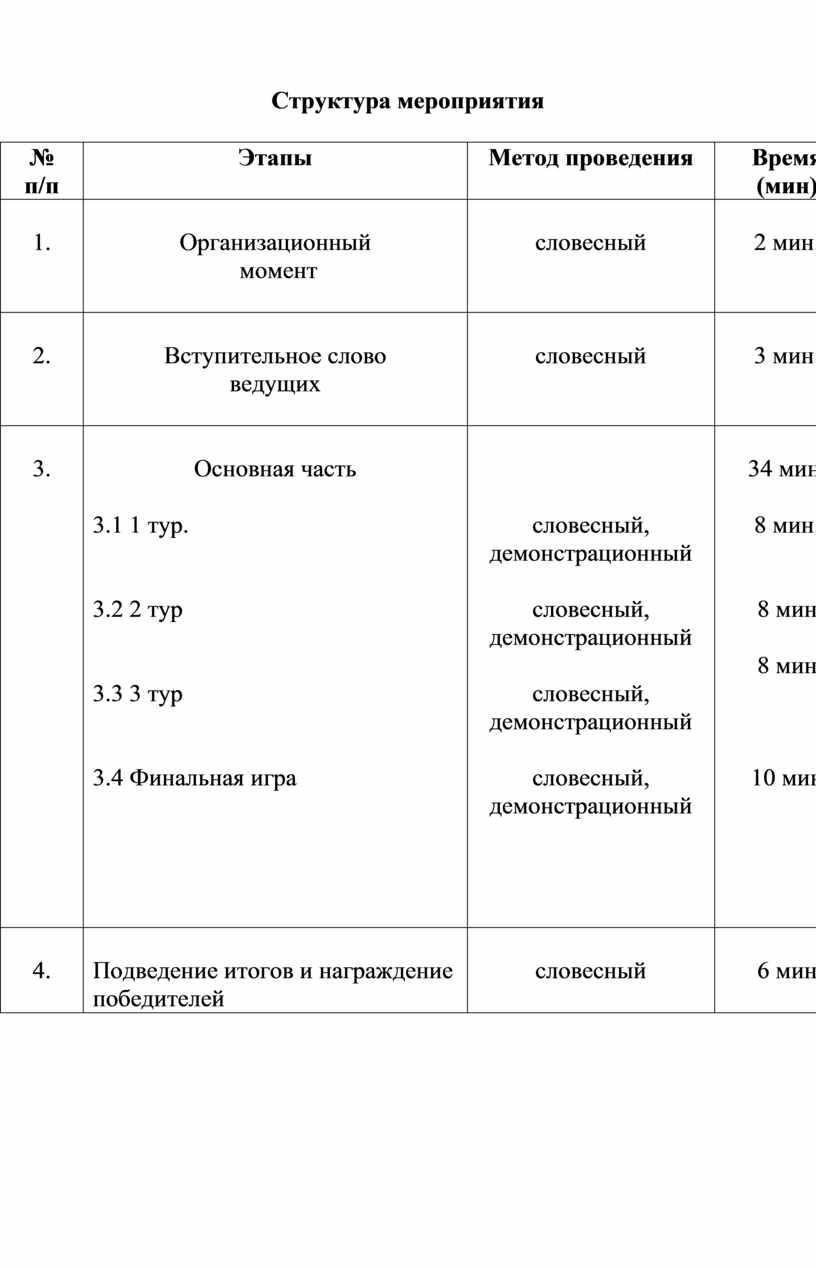 Структура мероприятия