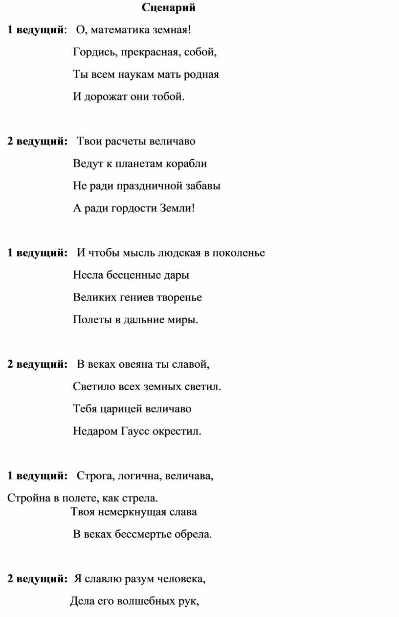 2 ведущий: Твои расчеты величаво