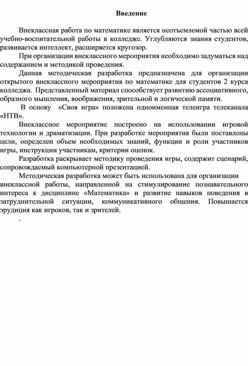 Данная методическая разработка предназначена для организации открытого внеклассного мероприятия по математике для студентов 2 курса колледжа.