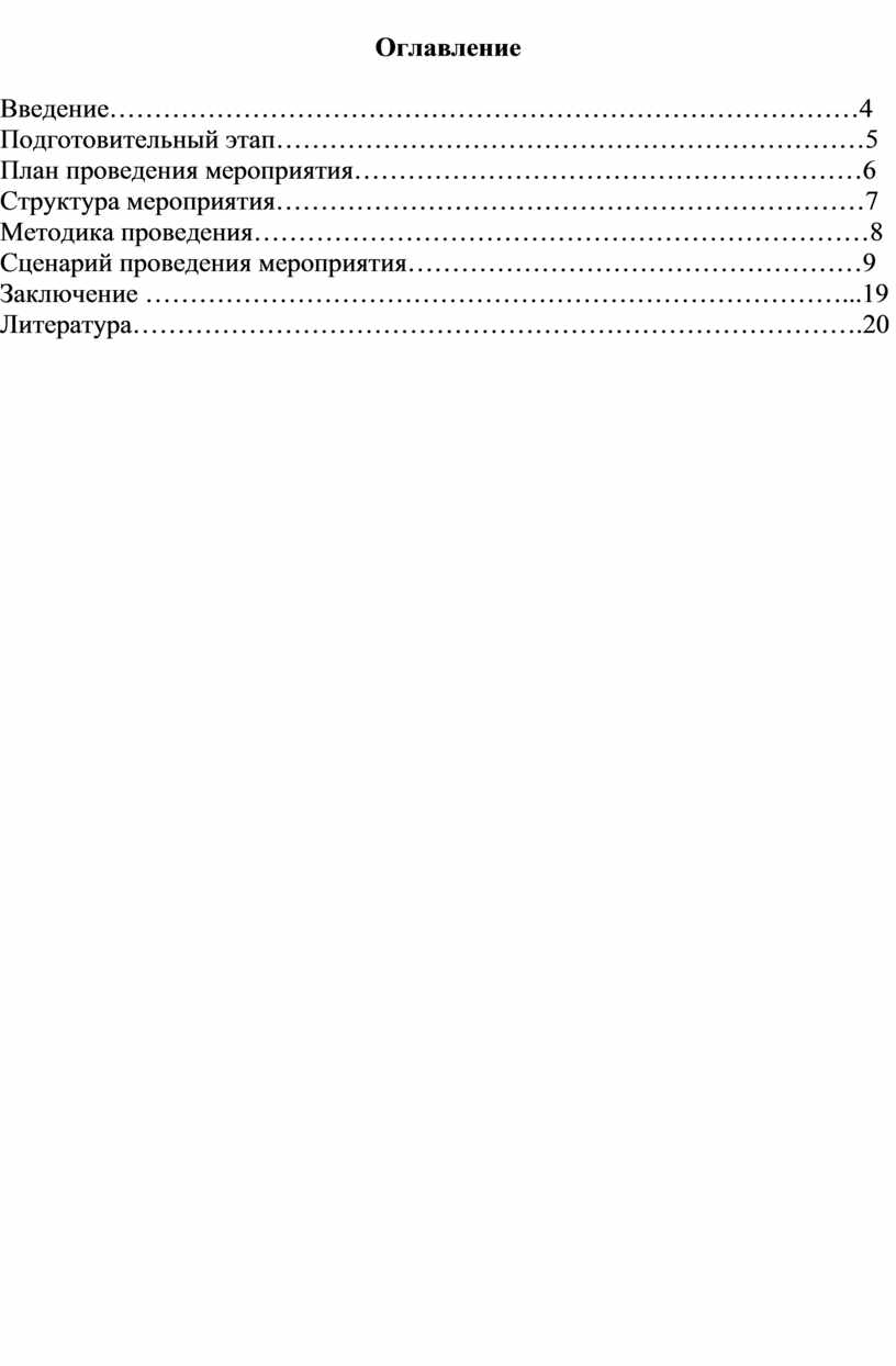 Структура мероприятия…………………………………………………………7