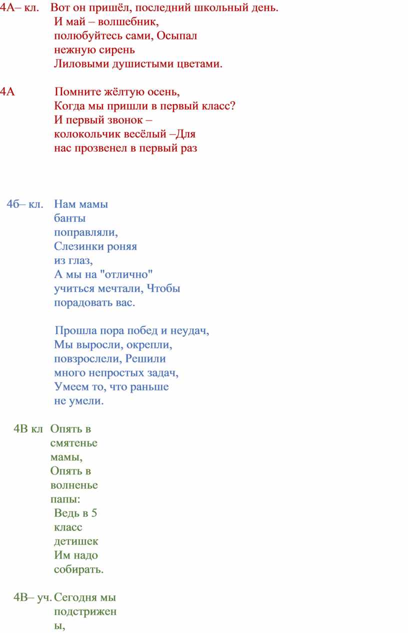 4б– кл. Нам мамы банты поправляли, Слезинки роняя из глаз,