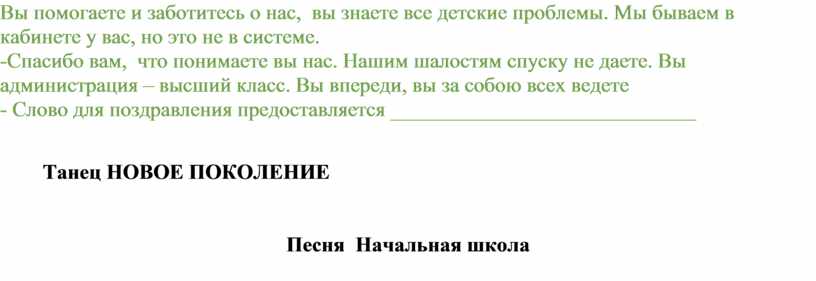 А сейчас мы хотим выразить слова искренней благодарности всем работникам школы, которые заботились о нас и помогали нам во всём.