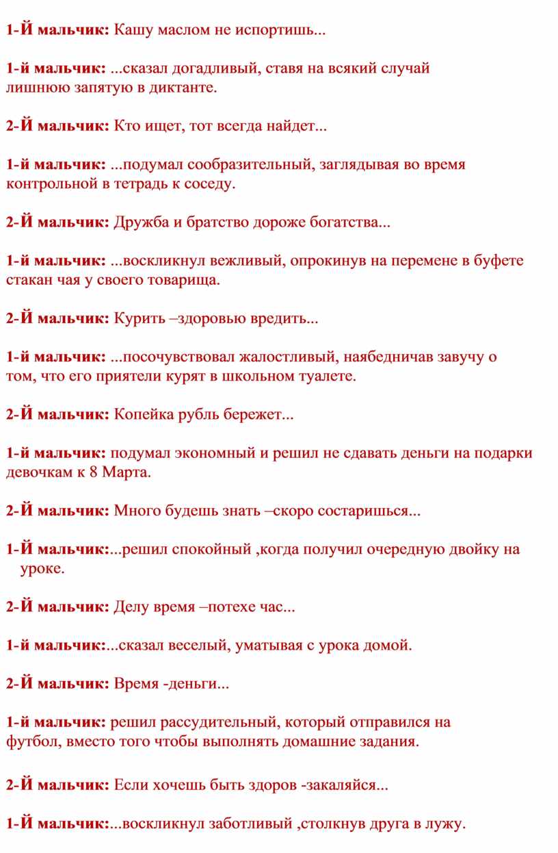1- Й мальчик:...воскликнул заботливый ,столкнув друга в лужу.