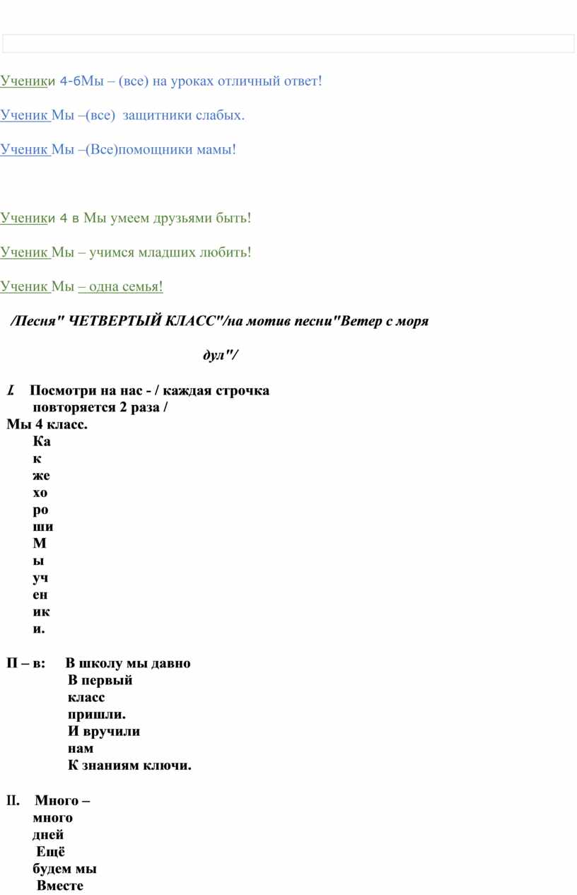 /Песня" ЧЕТВЕРТЫЙ КЛАСС"/на мотив песни"Ветер с моря дул"/