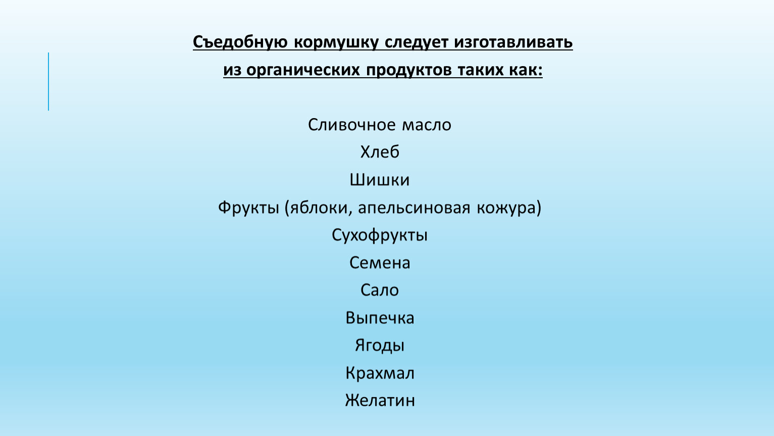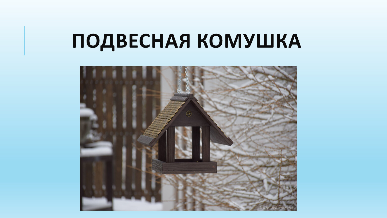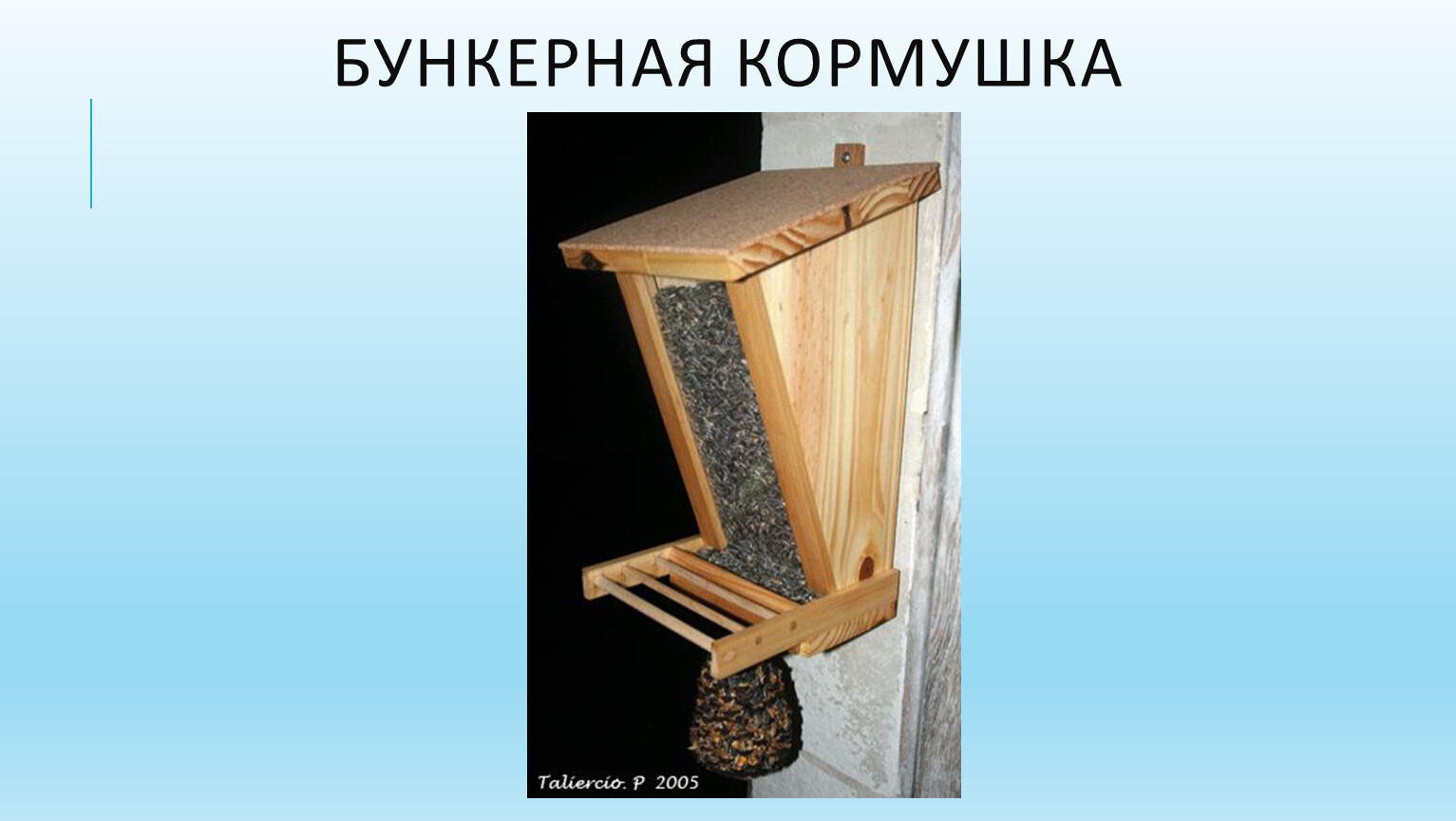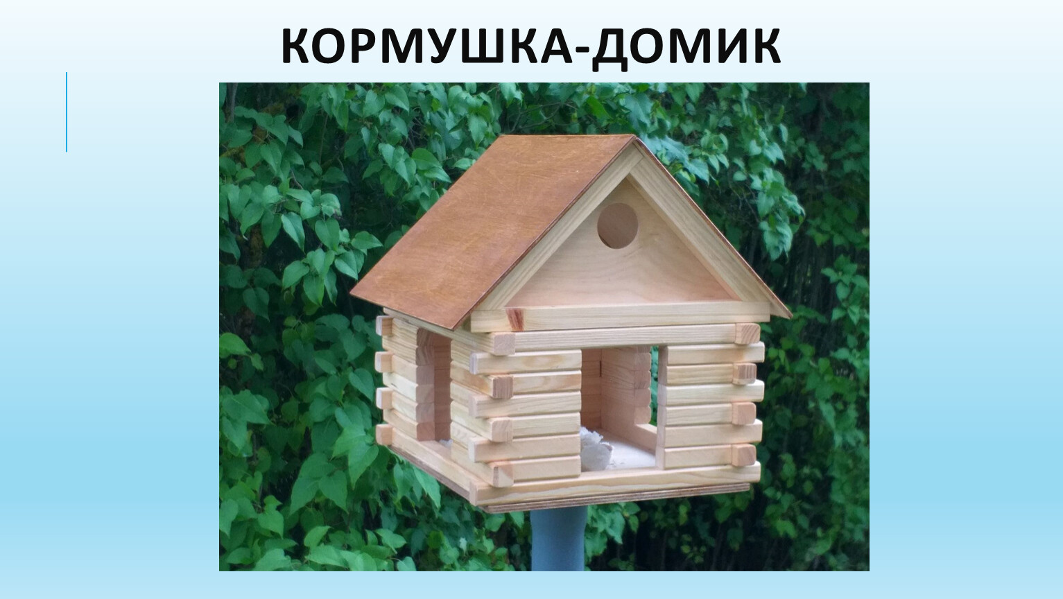 Основным материалом для изготовления кормушек данного вида служит натуральное дерево и все материалы из него (доска, спил древесный, горбыль и др.).