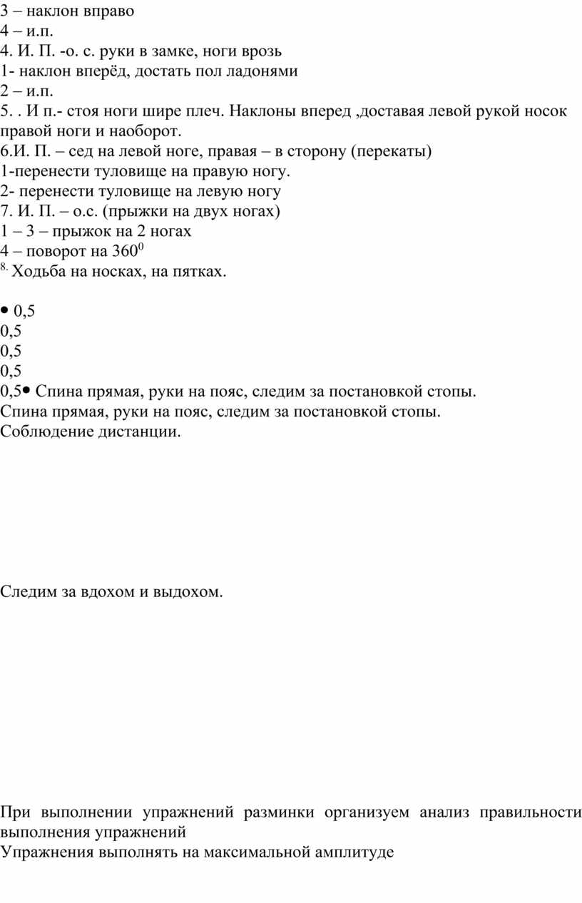 При выполнении упражнений разминки организуем анализ правильности выполнения упражнений Упражнения выполнять на максимальной амплитуде