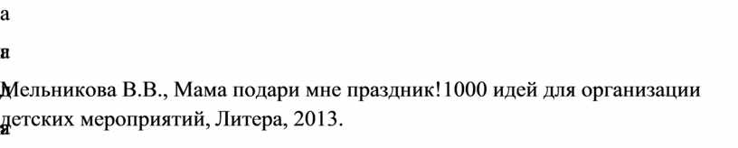 6. Мельникова В.В., Мама подари мне праздник! 1000 идей для организации детских мероприятий, Литера, 2013.