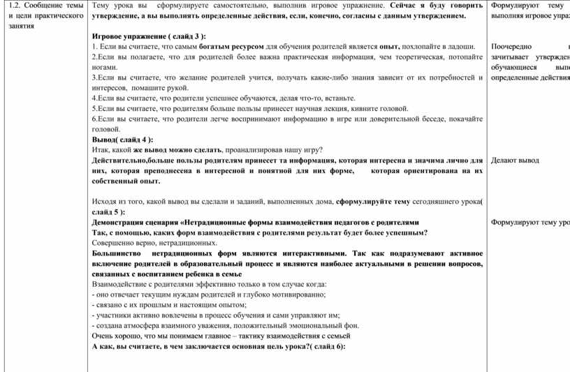 ПЗ: Демонстрация сценария «Нетрадиционные формы взаимодействия педагогов с родителями».