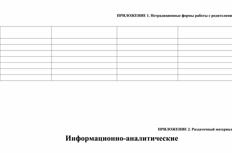 ПРИЛОЖЕНИЕ 1. Нетрадиционные формы работы с родителями