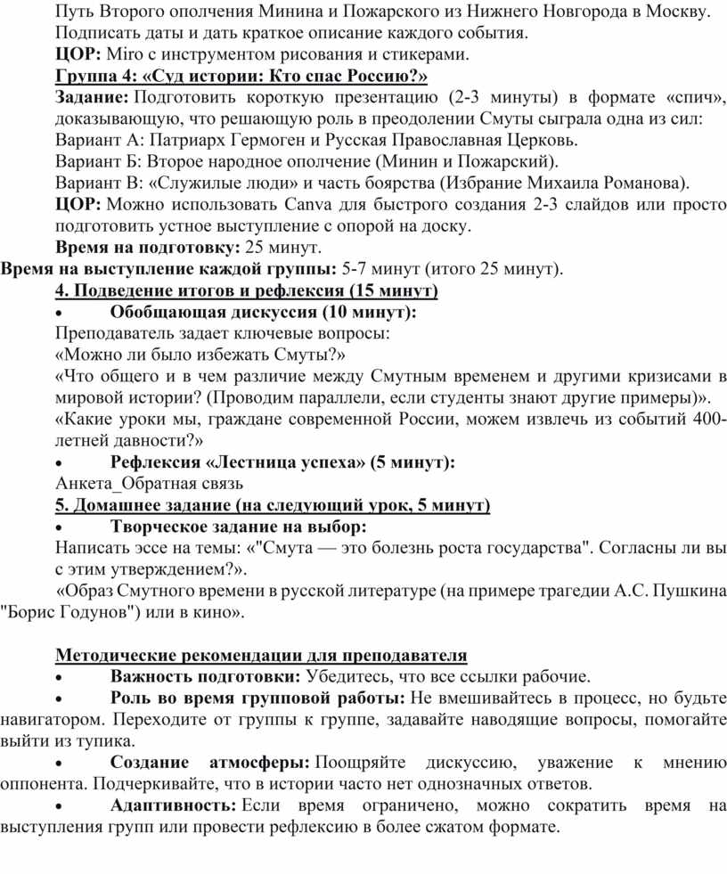 «Здравствуйте, уважаемые студенты! К следующему занятию по теме "Смутное время" вам необходимо выполнить следующие шаги: